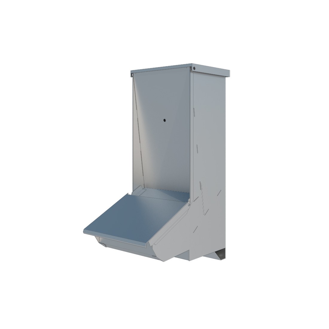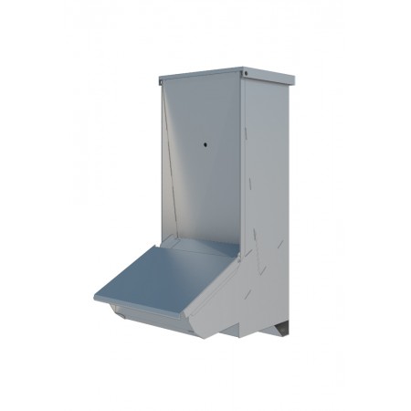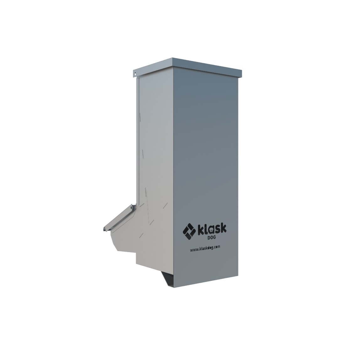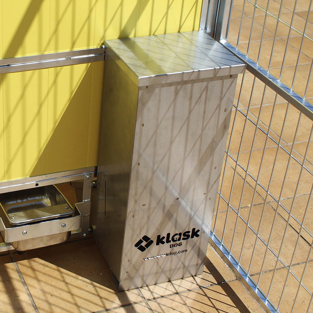 La TOLVA ALIMENTACION INOXIDABLE KLASKDOG, és una tolva fabricada totalmente en acero inoxidable que se acopla perfectamente en qualquier frontal de los BOXES MODULARES KLASKDOG, se trata de una tolva para cabida de unos 15kg de comida para nuestra mascota con caida constante de comida. Está pensada para instalaciones fijas en la que podemos almacenar pienso para nuestra mascota, pudiendo regular la cantidad de caida.