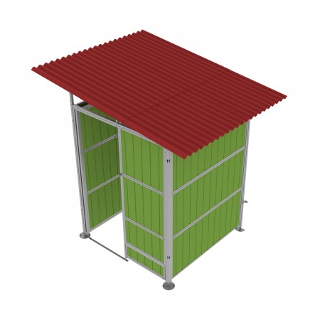 Box de 1.50 x 1.50 x1.90 (2.25m2) con todos los paneles opacos de PVC (colores a escoger) y aprovechando  una pared para poder apoyar el box. Caseta ideal para terrazas o patio/jardín o debajo de un cubierto o pérgola, para que nuestra mascota disfrute del espacio libre y tenga un lugar para descansar y resguardarse del frío, donde tengamos concentrados la comida/agua. Consta de frontal con puerta abatible y opción de tejado "T-1".