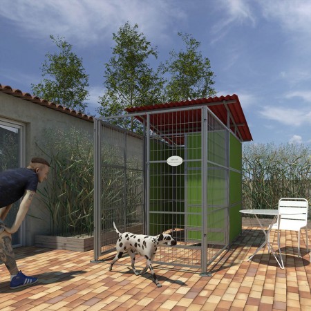 -Modelo de box para jardín o terraza, pudiendo dejar la puerta abierta para que el perro disfrute más libremente por nuestro patio, con la ventaja que en algún momento podemos cerrar al animal ,teniendo bastante espacio entre las dos zonas diferenciadas.