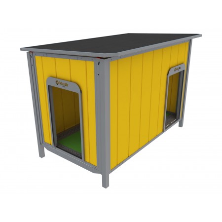 Caseta KLASKDOG  para perros totalmente desmontable y fabricada con materiales de alta calidad.Ideal para que nuestro perro se encuentre en las mejores condiciones para su descanso, debemos  mirar el perro que tenemos que se adapte mejor a las medidas de las casetas ;en interior dispone de un suelo de goma ,caucho totalmente resistente y a la vez es aislante .Disponen tel tejado en forma de tapa superior y basculante para poder accceder al interior, la tapa por la parte superior tambien llevara la misma goma para que el animal pueda descansar en cima de la caseta.La caseta lleva dos puertas (una puede cerrarse)porque muchos perros para entrar en un sitio cerrado , necesitan que tengan un lugar de escape.Esta fabricada en acero inoxidable,aluminio,PVC(5 colores a escoger)..materiales todos ellos de maxima calidad i anti-corrosivos.La caseta estar levantada con 4 patas y llevara unos tacos de goma con ruedas giratorias como accesorio entre otros.